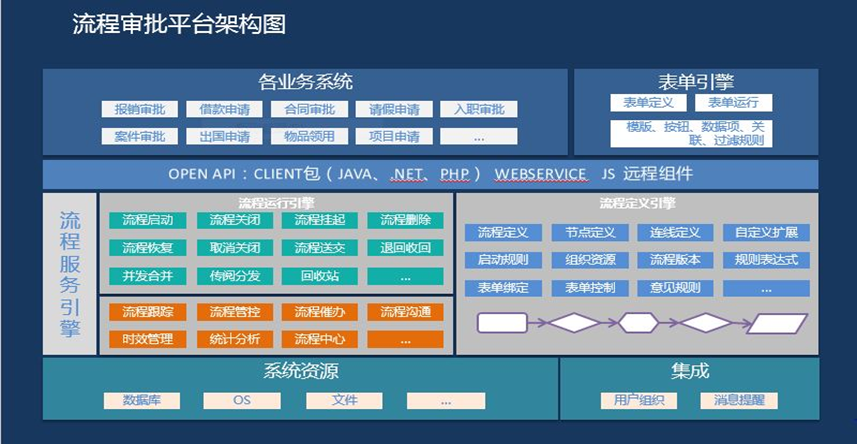 系统具备高度协同、灵活配置与多系统集成的优势,工作流引擎平台作为核心纽带,连接各应用模块,支持企业自定义流程管控体系;表单自定义与流程建模能力强,可快速配置流程、集成异构系统,降低开发成本与提升管理效率。工作流引擎平台应用领域广泛,支持跨操作系统、数据库、应用服务中间件、网络与 CA 认证,符合 WFMC 标准,具备先进的工作流技术、图形化流程建模、可视化表单设计、多文档格式支持与先进的痕迹保留技术,适配企业各类工作场景。